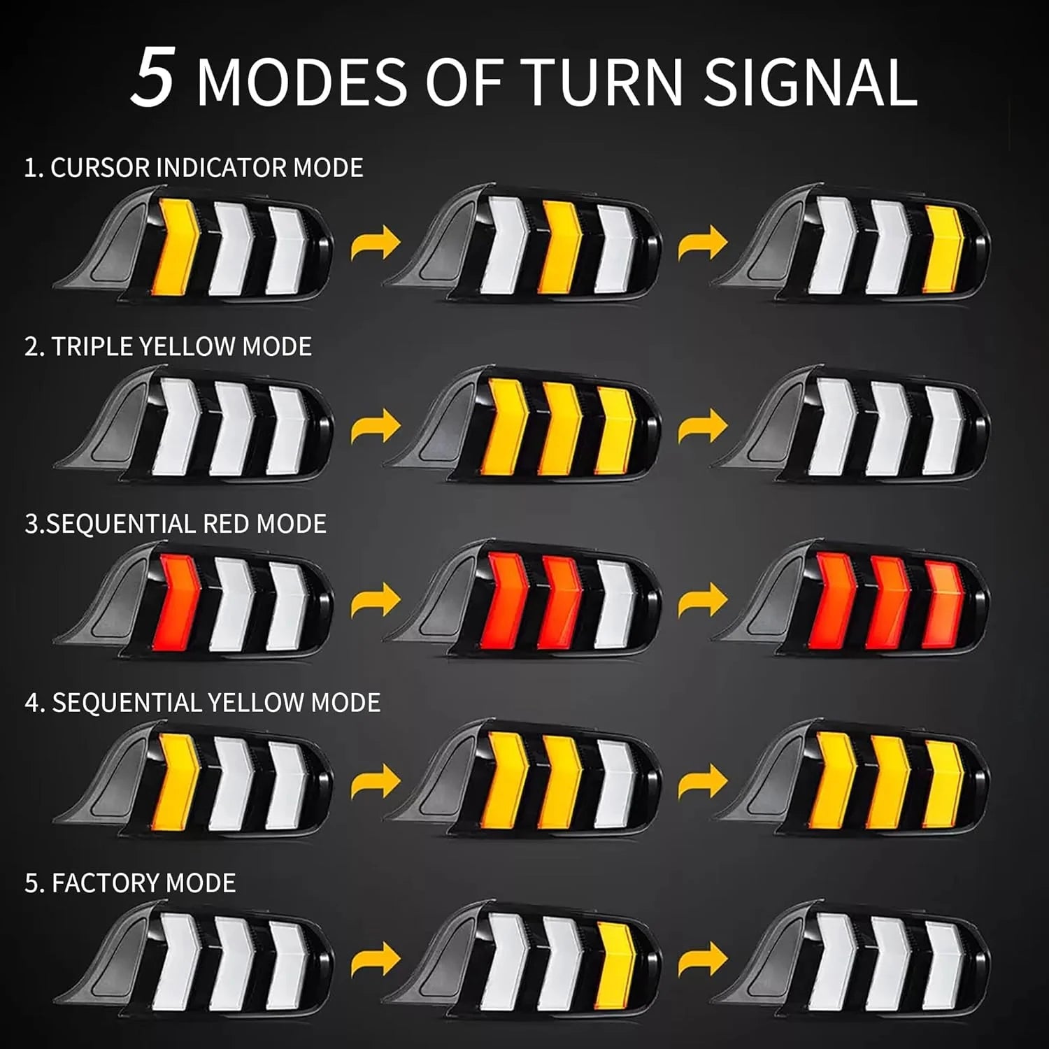 You can easily switch between Amber and Red sequential turn signals based on your preference.